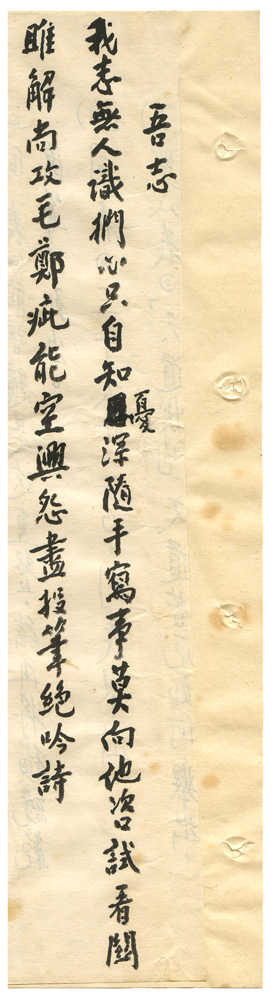 | 描述-摘要 | 我志無人識。捫心只自知。憂深隨手寫。事莫向他咨。試看關雎解。尚攻毛鄭疵。能空興怨盡。投筆絕吟詩。 |