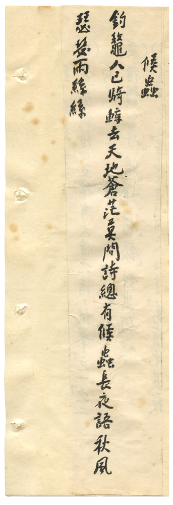 | 描述-摘要 | 釣鼇人已騎鯨去。天地蒼茫莫問詩。總有候蟲長夜語。秋風瑟瑟雨絲絲。 |