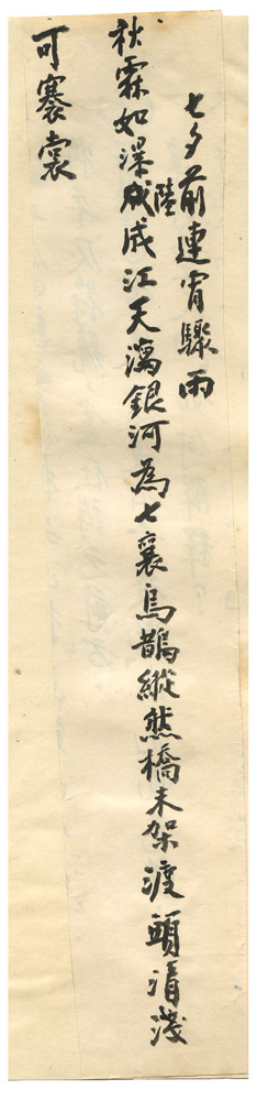 | 描述-摘要 | 秋霖如瀑陸成江。天瀉銀河為七襄。烏鵲縱然橋未架。渡頭清淺可褰裳。 |