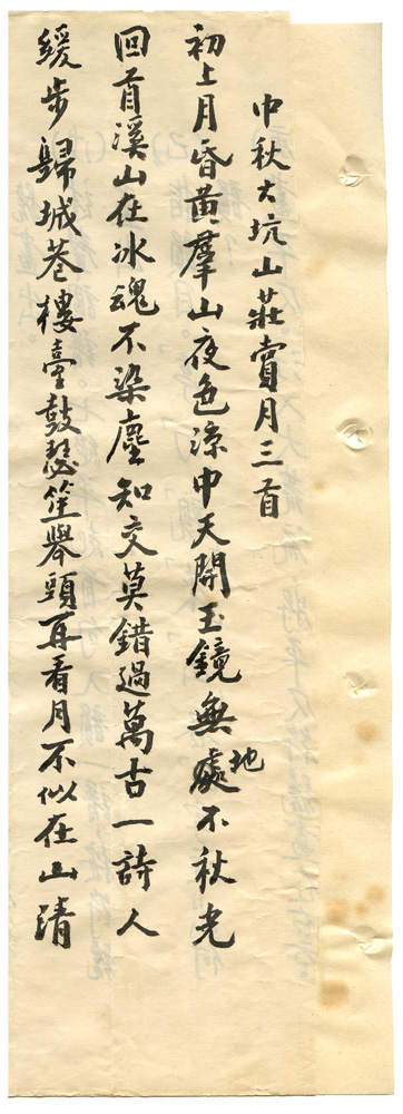 | 數位檔案連結 | 辛亥續鈔下未定稿-中秋大坑山莊賞月三首之一.jpg |