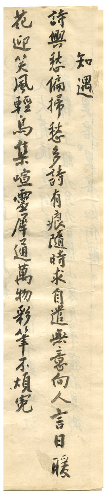 | 描述-摘要 | 詩興愁偏掃。愁多詩有痕。隨時求自遣。無意向人言。日暖花迎笑。風輕鳥集喧。靈犀通萬物。彩筆不煩冤。 |