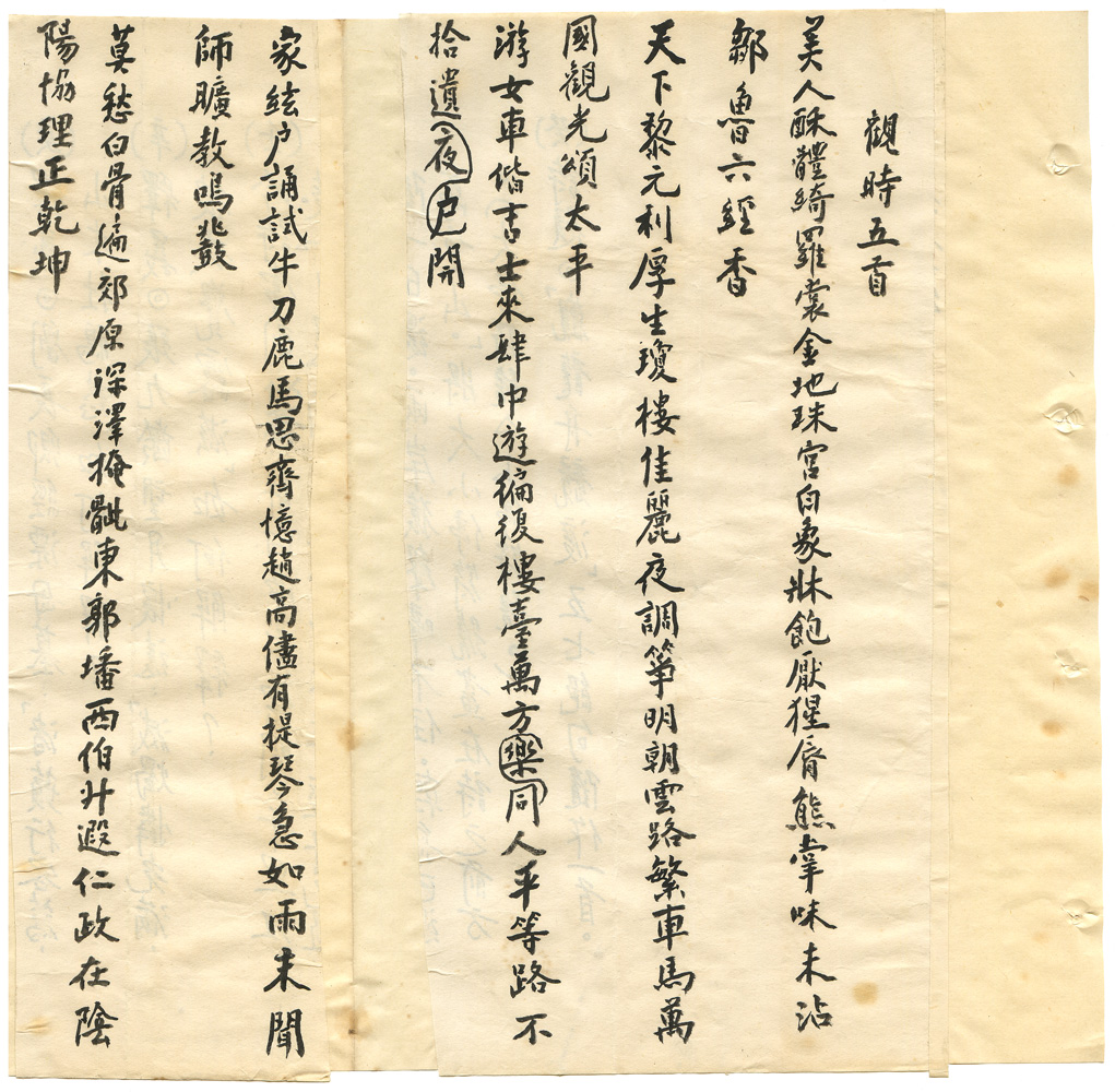 | 描述-摘要 | 游女車偕吉士來。肆中遊徧復樓臺。萬芳同樂人平等。路不拾遺戶夜開。 |