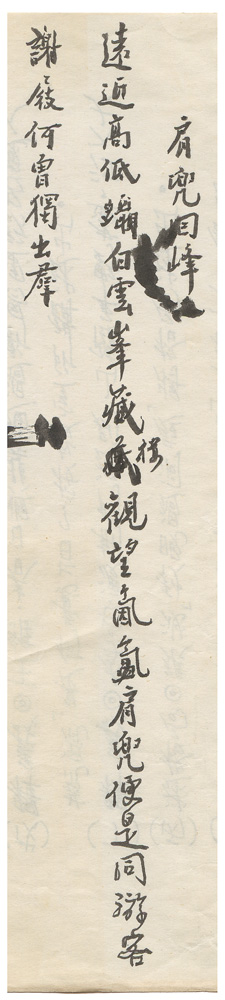| 描述-摘要 | 遠近高低躡白雲。峰藏樓觀望氤氳。肩兜便是同游客。謝屐何曾獨出群。 |