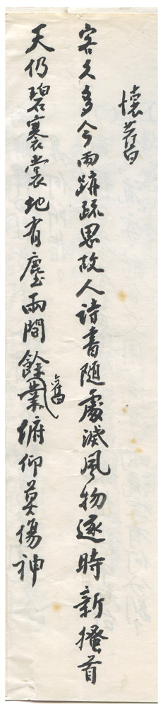 | 描述-摘要 | 客久多今雨。跡疏思故人。詩書隨處滅。風物逐時新。搔首天仍碧。褰裳地有塵。兩間餘舊業。俯仰莫傷神。 |