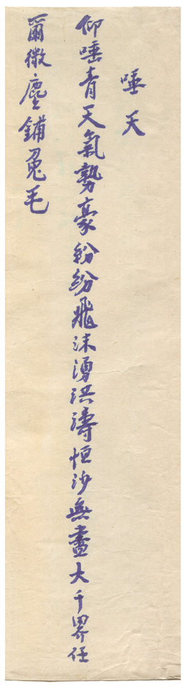 | 描述-摘要 | 仰唾青天氣勢豪。紛紛飛沫湧洪濤。恒沙無盡大千界。任爾微塵鋪兔毛。 |
