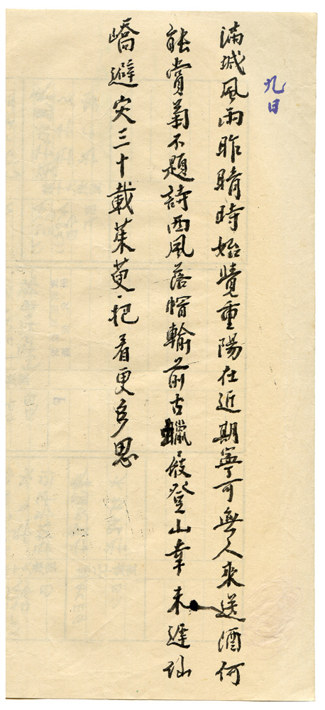 | 描述-摘要 | 滿城風雨昨晴時。始覺重陽在近期。寧可無人來送酒。何能賞菊不題詩。西風落帽輸前古。蠟屐登山幸未遲。仙嶠避災三十載。茱萸把看更多思。 |