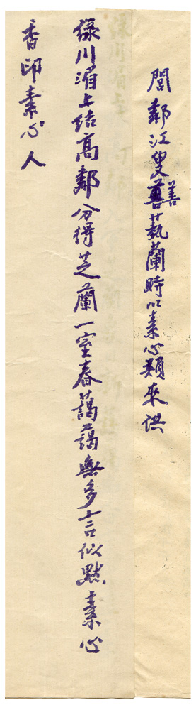 | 描述-摘要 | 綠川湄上結高鄰。分得芝蘭一室春。藹藹無多言似默。素心香印素心人。 |