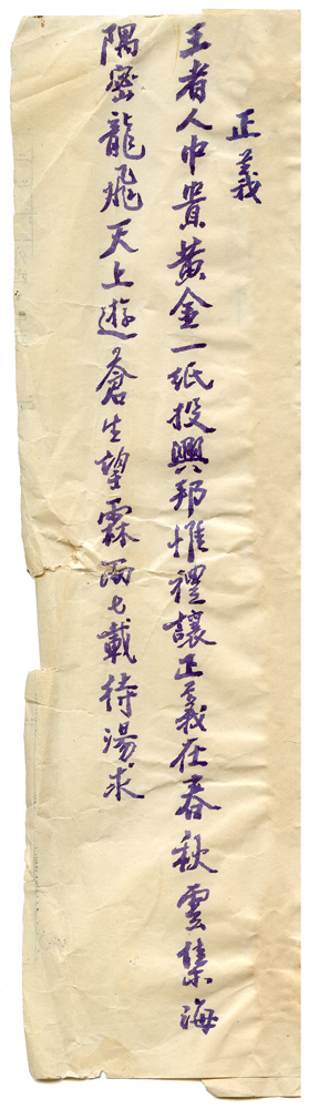 | 描述-摘要 | 王者人中貴。黃金一紙投。興邦惟禮讓。正義在春秋。雲集海隅密。龍飛天上遊。蒼生望霖雨。七載待湯求。 |
