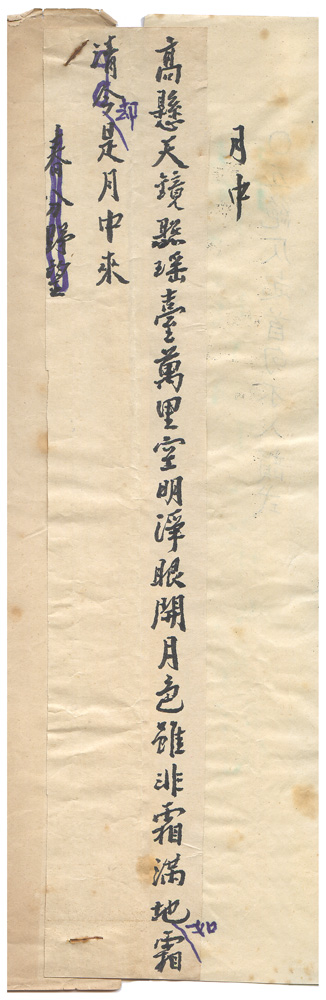 描述-摘要 | 高懸天鏡照瑤臺。萬里空明淨眼開。月色雖非霜滿地。如霜却是月中來。 |