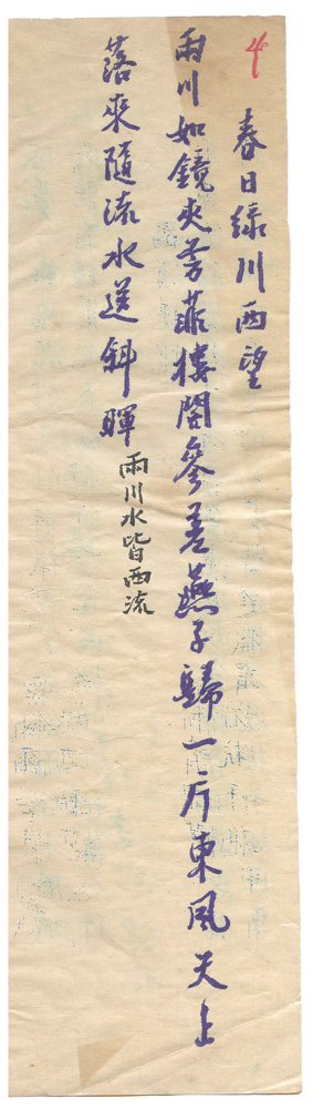 | 描述-摘要 | 兩川如鏡夾芳菲。樓閣參差燕子歸。一片東風天上落。來隨流水送斜暉。(兩川水皆西流) |
