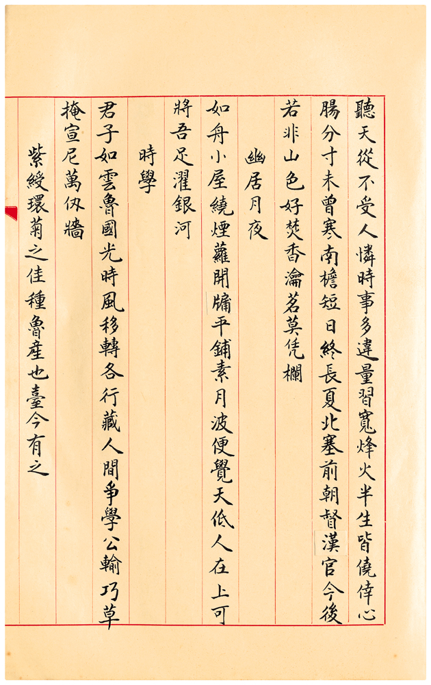 | 描述-摘要 | 聽天從不受人憐。時事多違量習寬。烽火半生皆僥倖。心腸分寸未曾寒。南檐短日終長夏。北塞前朝督漢官。今後若非山色好。焚香瀹茗莫凭欄。 |