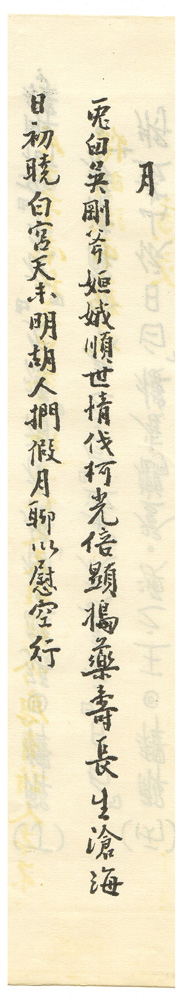 | 描述-摘要 | 兔臼吳剛斧。姮娥順世情。伐柯光倍顯。搗藥壽長生。滄海日初曉。白宮天未明。胡人捫假月。聊以慰空行。 |