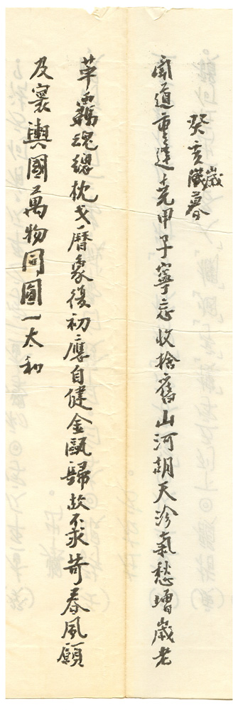 | 描述-摘要 | 聞道重逢堯甲子。寧忘收拾舊山河。胡天沴氣愁增歲。老革覊魂總枕戈。曆象復初應自健。金甌歸故不求苛。春風願及寰輿國。萬物同圓一太和。 |