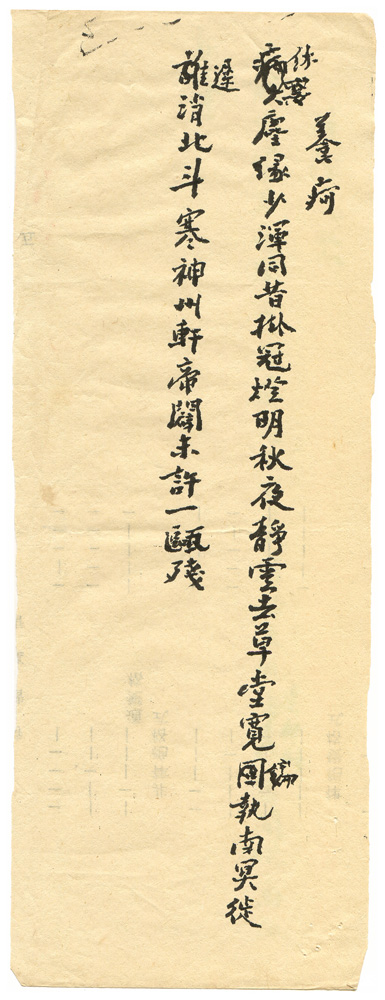 | 描述-摘要 | 休宴塵緣少。渾同昔掛冠。燈明秋夜靜。雲去草堂寬。偏執南冥徙。遲消北斗寒。神州軒帝闢。未許一甌殘。 |
