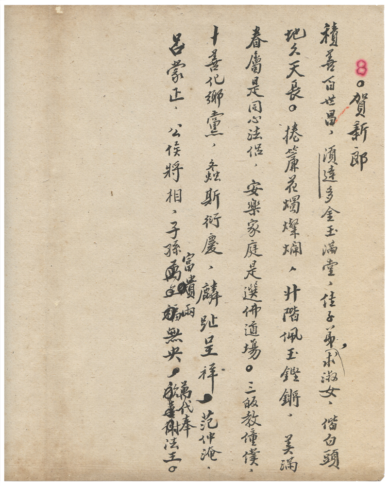 | 描述-摘要 | 積善百世昌 悉達多 金玉滿堂 佳弟子 求淑女 偕白頭 地久天長 捲簾花燭燦爛 升階佩玉鏗鏘 美滿眷屬是同心法侶 安樂家庭 是選佛道場 三皈教僮僕 十善化鄉黨 螽斯衍慶 麟趾呈祥 范仲淹 呂蒙正 公侯將相子孫富貴 兩無央 萬代奉法王(楊詠譜作曲) |