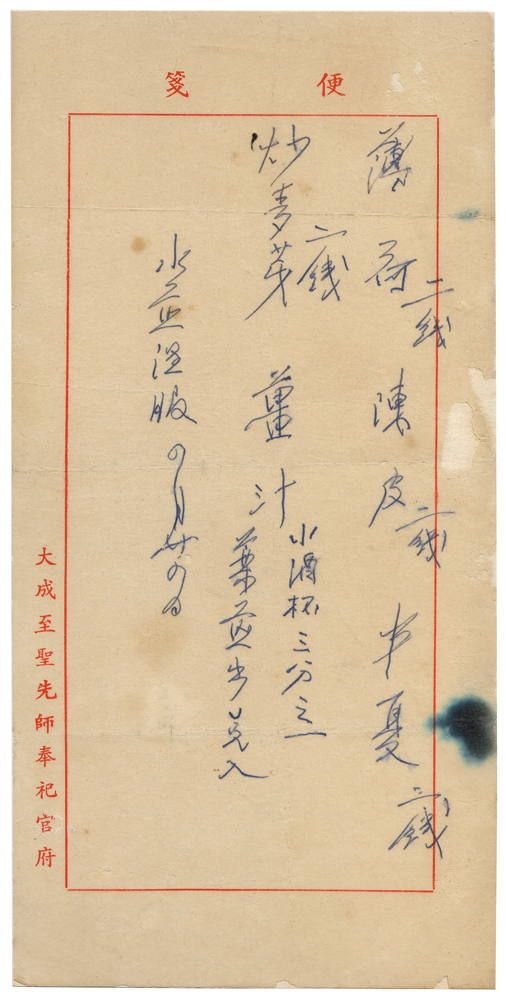 | 描述-摘要 | 薄荷二錢、陳皮二錢、半夏二錢、炒麥芽二錢、薑汁小酒杯三分之一藥煎出?入 水煎溫服 四月二十四日 |
