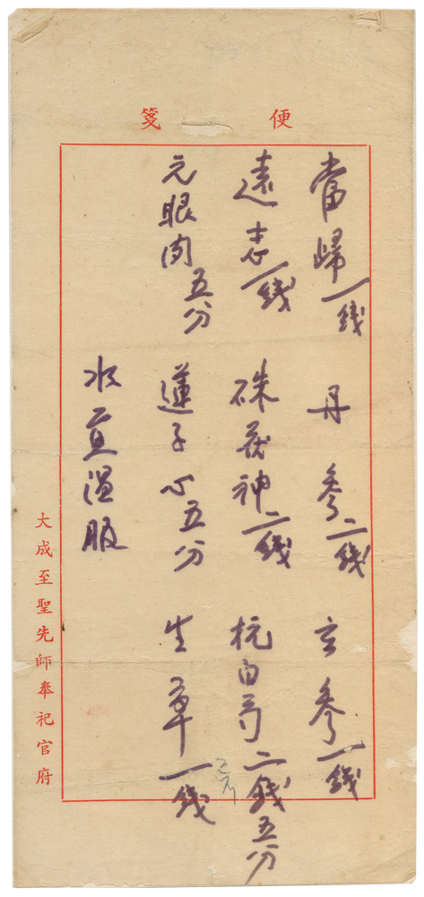 | 描述-摘要 | 當歸一錢、丹參二錢、玄參一錢、遠志一錢、硃茯神二錢、杭白芍二錢五分、元眼肉五分、蓮子心五分、生草一錢 水煎溫服 |