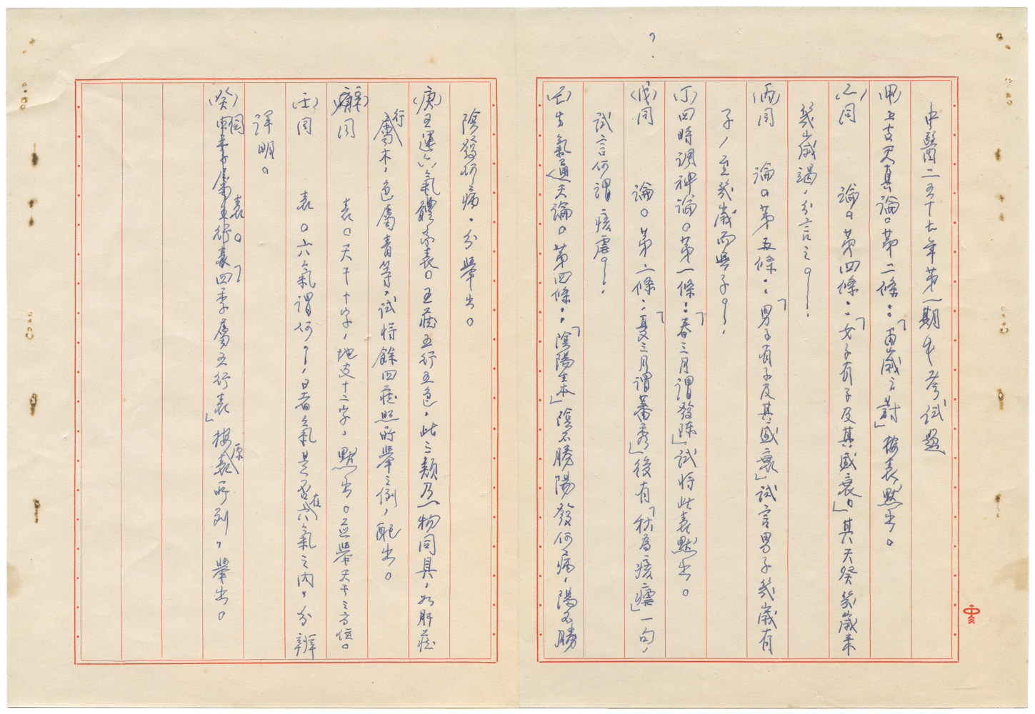 | 件名 | 中醫二五十七年第一期中考試題 |