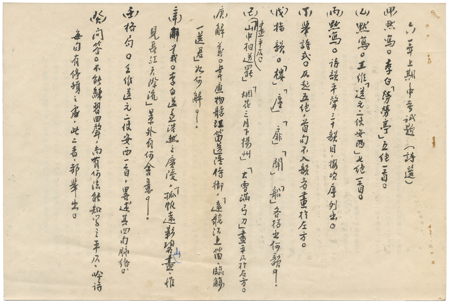| 件名 | 六一年上期期中考試題(詩選) |