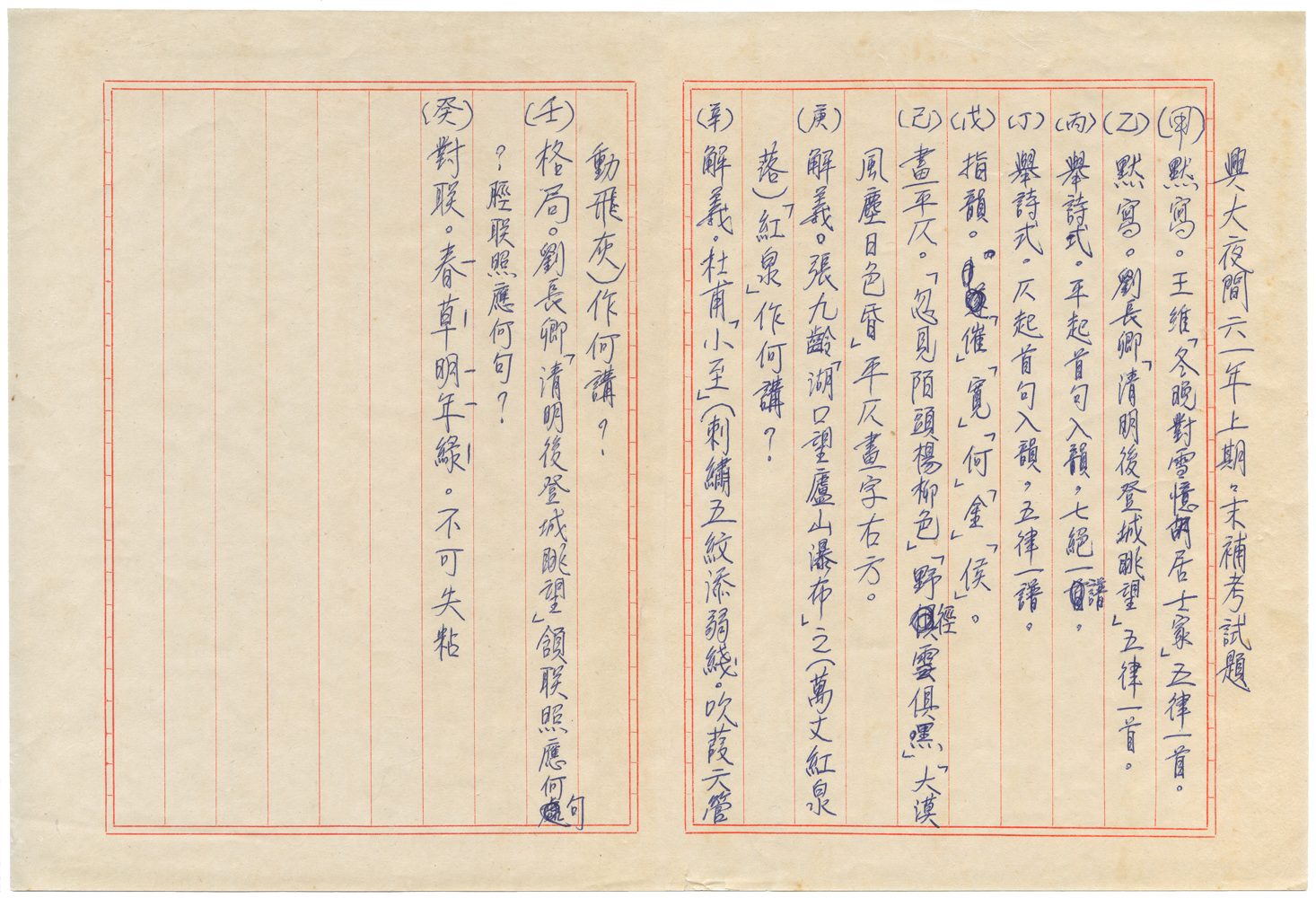 | 件名 | 興大夜間六一年上期期末補考試題 |